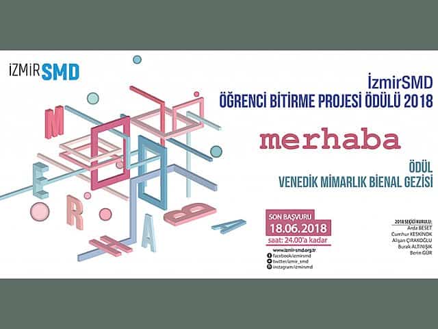 İzmir Serbest Mimarlar Derneği tarafından İzmir kenti mimarlık okulları arasında en iyi bitirme projelerini seçmek, yeni/genç mimarları teşvik etmek, özendirici bir ortam oluşturmak amacıyla düzenlenen yarışmaya başvuru için son tarih 18 Haziran 2018.