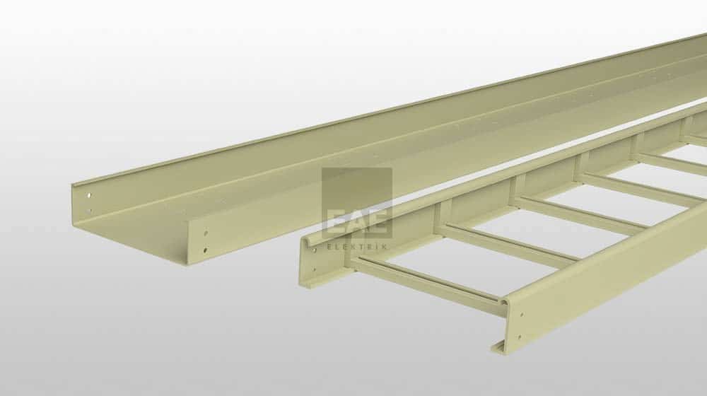 - Merdiven Tipi Kablo Kanalı: Merdiven tepsisi (merdivene benzer) tipik olarak, daha yüksek akım taşıma kapasitesi ve ağırlığı için daha uzun çoklu kablo geçişleri için besleyici uygulamalarında kullanılır. Merdiven tepsisi yatay veya dikey düzlemlerde kolayca kesilebilir, şekillendirilebilir ve takılabilir.