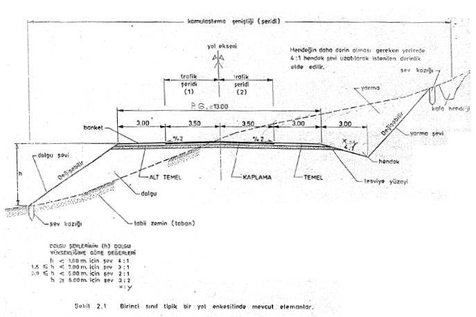 Karayoluna ilişkin ve yukarıda öz biçimde verilen terim ve tanımların bir bölümü şekilde gösterilmektedir.