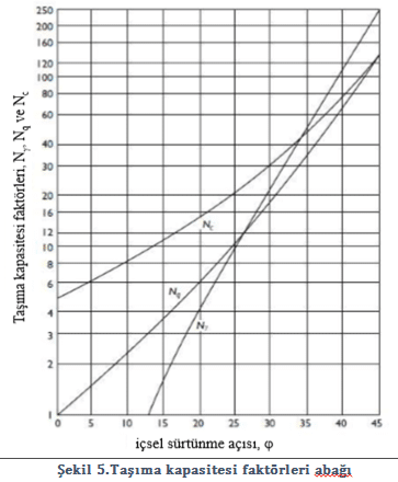 Taşıma kapasitesi faktörleri bulunurken ise şekil.5 deki abak kullanılabilir;