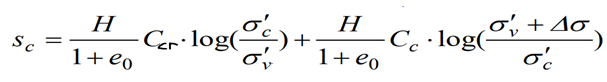 Önyüklemeli zeminlerde gerilme artışından sonra tabaka ortasındaki toplam efektif gerilme (inşaat öncesi efektif düşey gerilme [σ’vo] + üst yapı yükünden kaynaklanan gerilme artışı [∆σ] ) önyükleme basıncından [σ’c] fazla olursa: