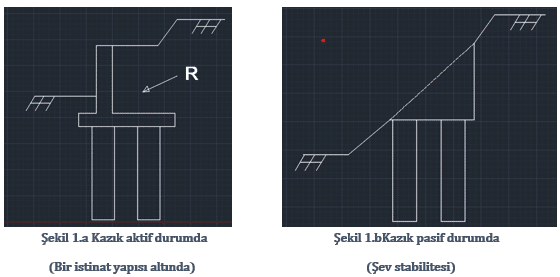- Yatay yükler statik durumda iken kazıklar aktif (şekil1.a) veya pasif (şekil1.b) durumda olabilirler.