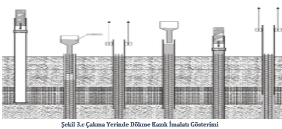 - Çakma Yerinde Dökme Kazıklar(Vibro,vibreks,franki vs) (Şekil3.c)