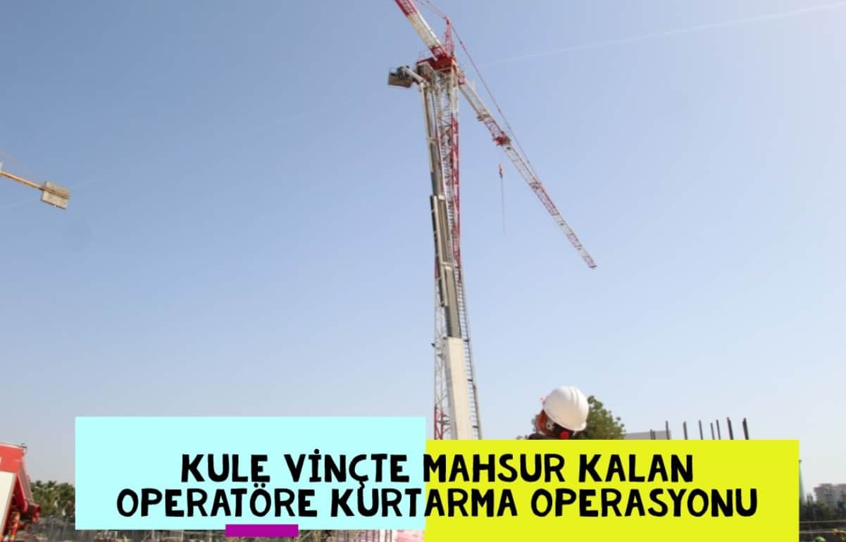Antalya Konyaaltı’nda bulunan Akdeniz Üniversitesi yerleşkesi içindeki yurt inşaatında kurulu olan 45 metrelik kule vincin operatörü, vincin kumanda merkezinde rahatsızlanarak mahsur kaldı. 45 metre yüksekten aşağı inemeyecek durumdaki operatörü itfaiye ekilpleri kurtardı.