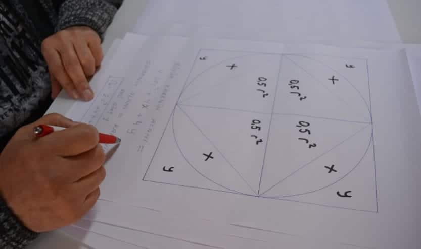 Hüseyin Ergül, “Herhangi bir daire çizdikten sonra, o daireye dıştan teğet bir dörtgen çizerek söz konusu dörtgenin uzunluğu ile çapın uzunluğu eşit olduğu için bu bir karedir. Karenin alanı, bir kenar uzunluğunun kendisi ile çarpımına eşittir. Yani burada çapın kendisi ile çarpımına eşittir. Çapı da bir bu karenin bir kenar uzunluğuna eşittir. Buradan hareketle; çizdiğimiz dörtgen üzerindeki parçalara bakıldığında; bütün parçalarına eşittir. Yani büyük karenin alanı 4 adet X ve 4 adet Y ve 4 adet 0.5 r karenin toplamına eşittir. Bundan en ufak bir şüphe edilebilmesi mümkün değildir. Bu noktada; büyük karenin alanından 4 adet Y’yi çıkardığınızda, geriye dairenin alanı kalır. Bu birinci yöntemdir. Bunun dışında ikinci yöntem ise; yine ‘Bütün parçalarına eşittir’ ilkesiyle yola çıktığımızda, çizdiğimiz dairenin alanı içerideki karenin alanı; 4 adet X’in toplamıyla ortaya çıkmaktadır. Bu da dairenin alanına eşittir. O halde iki alanın birbirine olan eşitliğinden ‘Da=2r kare+4x’ formülünü elde etmiş oluruz. Tüm bunların dışında çizdiğimiz şekilde dairenin içerisindeki karenin 4’te 1’i yarı çapı uzunluğunda yine küçük bir karedir. Bu karenin alanı 0.5r kare+X+Y’dir. Burada X ve Y bilinmeyen sayılardır. Bu bilinmeyenleri ara işlemlerle bularak, 4 katını alır ilave ederiz. Bahsettiğim formüllere uygun olarak, burada X’in değeri, küçük karenin 1 bölü 6’sına eşit olur. Bundan 4 adet olduğu için 4 ile çarpıyorum ve sonuçta dairenin alanı 2r kare+2bölü3 2r kare olarak karşımıza çıkıyor. Görüldüğü üzere Pi sayısına ihtiyaç duymadan dairenin alanını yarıçapı karesi üzerinden bulabiliyoruz” ifadelerini kullandı.
