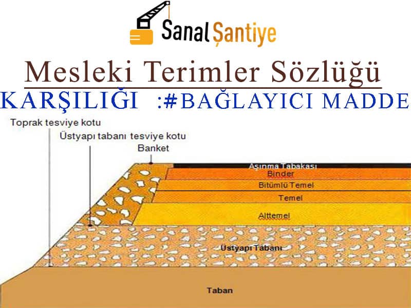 Asfalt yol yapımında, bitümlü temel ile aşınma tabakası arasına serilen bağlayıcıklık özelliği olan madde(binder).