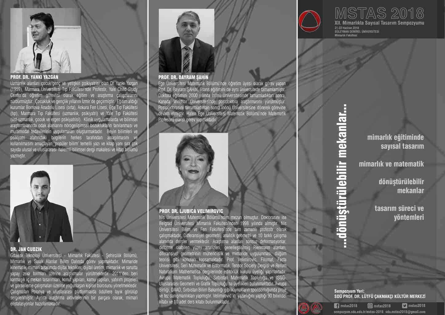 Süleyman Demirel Üniversitesi’nin ev sahipliğinde düzenlenecek olan sempozyum, dünyada hızla ilerleme gösteren sayısal tasarım çalışmalarına Anadolu’da yer alan üniversitelerin de entegre olması açısından büyük önem taşıyor. Yerli ve yabancı davetli konuşmacıların tematik sunumlarının yer alacağı sempozyumun açılış sunumu, uzmanlık alanı çocuk/genç ve yetişkin psikiyatrisi olan Prof. Dr. Yankı Yazgan tarafından yapılacak. Sayısal tasarım araştırmaları üzerine çalışan akademisyenler, yurt dışı ve yurt içinden davet edilen konuşmacılar, sektörün önde gelenleri, disiplinlerarası çalışmalar yapan araştırmacılar ve paydaşlar, çalışmalarını Süleyman Demirel Üniversitesi’nde katılımcılarla paylaşacak.