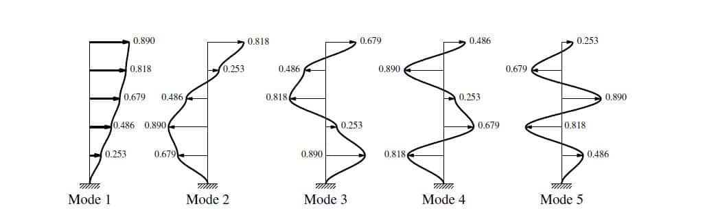 Mod şekli aslında deformasyon şekillerinin gösterilmesidir. Ve her periyot için bir mod şeklinden bahsedebiliriz. Aşağıdaki görsel buna örnek olabilir.