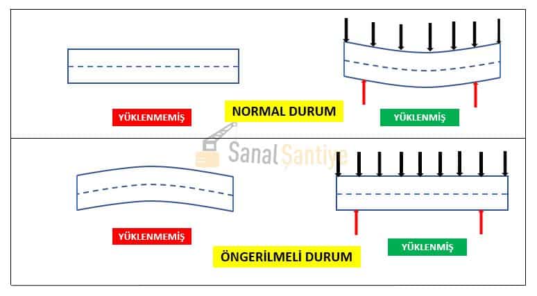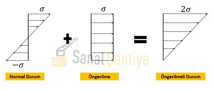 Betonda yapay olarak oluşturulan basınç gerilmeleri, işletme sonucunda oluşacak çekme gerilmelerinin yok edilmesine neden olur. Çelik ise sünektir ve öngerilme ile oluşan yüksek gerilme altında çalışabilme özelliğine sahiptir. Öngerilme işlemi ile çeliğe yüklenen yüksek enerji, elemanın alt kısmında sıkışma olmasına neden olur ve hafif bir ters sehim oluşturur. Bu işlemle betonun çekme dayanımının düşük olmasından dolayı oluşan zafiyet giderilmiş olur. Ayrıca kiriş uzunluğu boyunca yukarı yönde oluşan kuvvet, kirişe gelen yükleri karşılayacaktır.