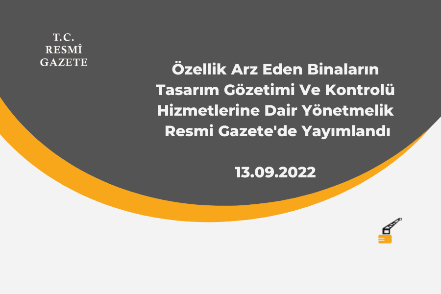 İleri tasarım yöntemleri ve teknolojilerinin gerektirdiği, özellik arz eden yapıların tasarım gözetimi ve kontrol hizmetleriyle birlikte bu hizmetleri yerine getirecek kişilerin eğitim, mesleki yeterlilik ve deneyim konularını belirleyen, ayrıca bunların belgelendirilmesi ve bu hizmetlerin yürütülmesine dair usul ve esasları belirleyen “Özellik Arz Eden Binaların Tasarım Gözetimi Ve Kontrolü Hizmetlerine Dair Yönetmelik” 28 Eylül 2022 tarih 31967 sayılı Resmi Gazete’de yayımlandı.