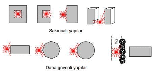 Altı garaj, avlulu, içbükey, büyük yüzeyli, yola yakın, çıkmalı, birbirine yakın, yüksek yapılar patlama basıncından ve büyüyerek yansıyan basınçtan büyük zarar görürler. Küçük yüzeyli, dışbükey, yoldan uzak, ağaçlar ile çevrelenmiş yapılar daha güvenlidir.