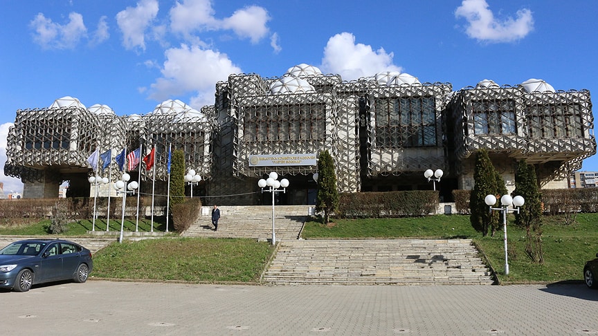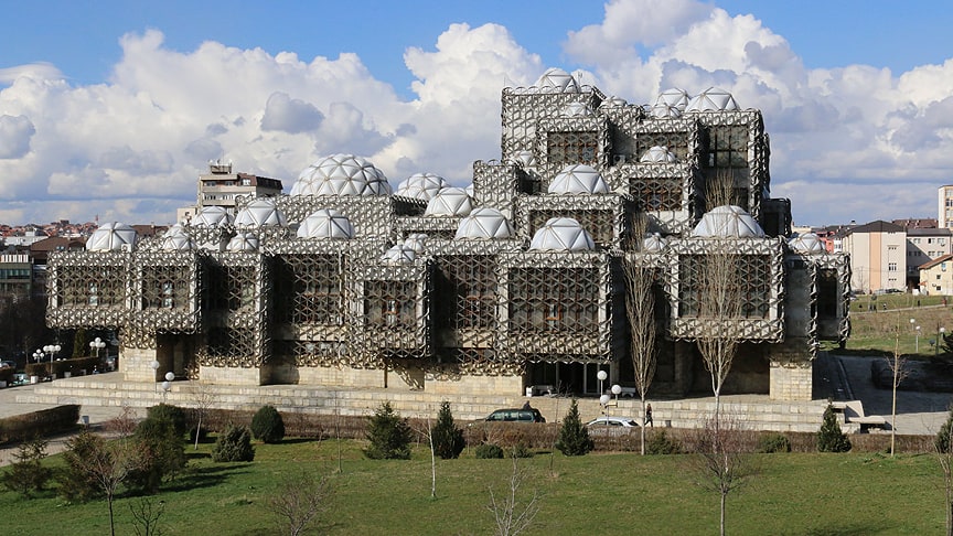 Kosova Milli Kütüphanesi “Pjeter Bogdani”, kubbelerle örtülü eşsiz mimarisiyle başkent Priştine’nin en ilginç sembollerinden birini teşkil ediyor.