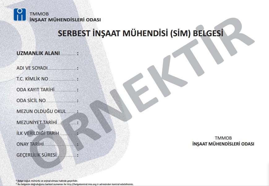 “Serbest inşaat mühendislik hizmetlerinden birini veya bir kaçını ücreti karşılığında, kendi hesabına veya kamu kurum ve kuruluşları dışında bir gerçek ya da tüzel kişi hesabına ücretli veya ortak bir bağlantı içinde yapan inşaat mühendisini (SİM)’dir.”