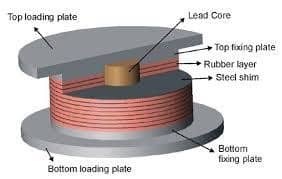 Yuvarlak veya dikdörtgen şekildeki çelik ve kauçuk plakalar birbirlerine entegre edilir ve ortasına kurşun çekirdek yerleştirilir. Kurşun çekirdeği enerjiyi sönümlemeye yarar ve %20 ila %30 arasında sönümleme yapar.