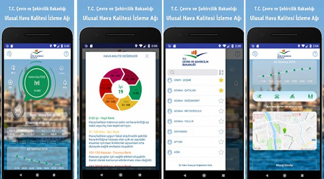 “Ulusal Hava Kalitesi İzleme Ağı”nda yer alan 300 adet hava kalitesi ölçüm istasyonundan elde edilen ölçüm sonuçlarını “www.havaizleme.gov.tr” web adresinden kamuoyu bilgisine sunan bakanlık, vatandaşların havanın kalitesine daha kolay erişebilmesi amacıyla mobil uygulama geliştirdi.