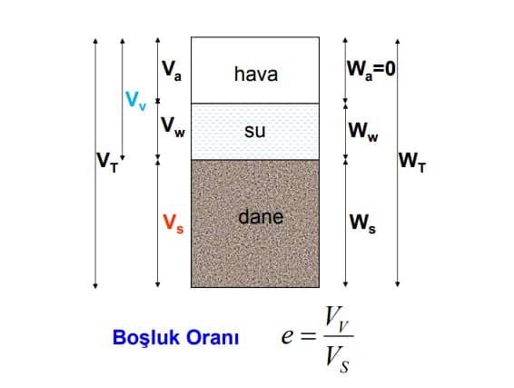 Daneler arası boşluklar; en genel durumda kısmen su ve kısmen de hava ile dolu olabildiği gibi, suya tam doygun zeminlerde tamamen su, kuru zeminlerde tamamen hava ile doludurlar.