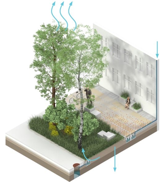 Bitkiler şehirler için pek çok avantaj sunuyor; estetik bir görünüm, sağlıklı bir çevre ve hayvanlar için doğal bir yaşam alanı. Bunu yaparken de olası sel sularını emiyor.