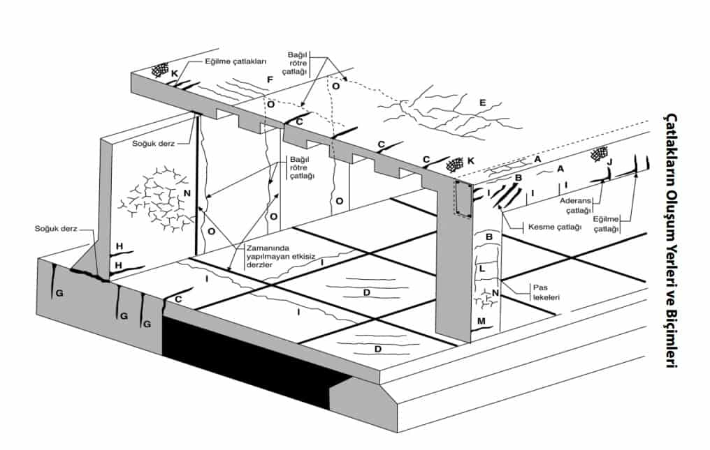 Taze veya Sertleşmiş Betonda Çatlak Tipleri
