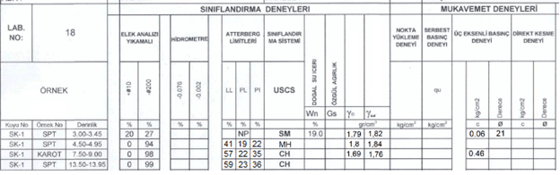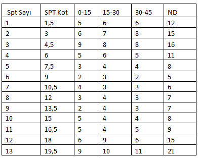 Tablo sonucunda kayma hızı ve drenajsız kayma mukavemeti için ZD sonucu bulunurken, SPT deneyinde sonuç ZE olarak bulunmuştur.