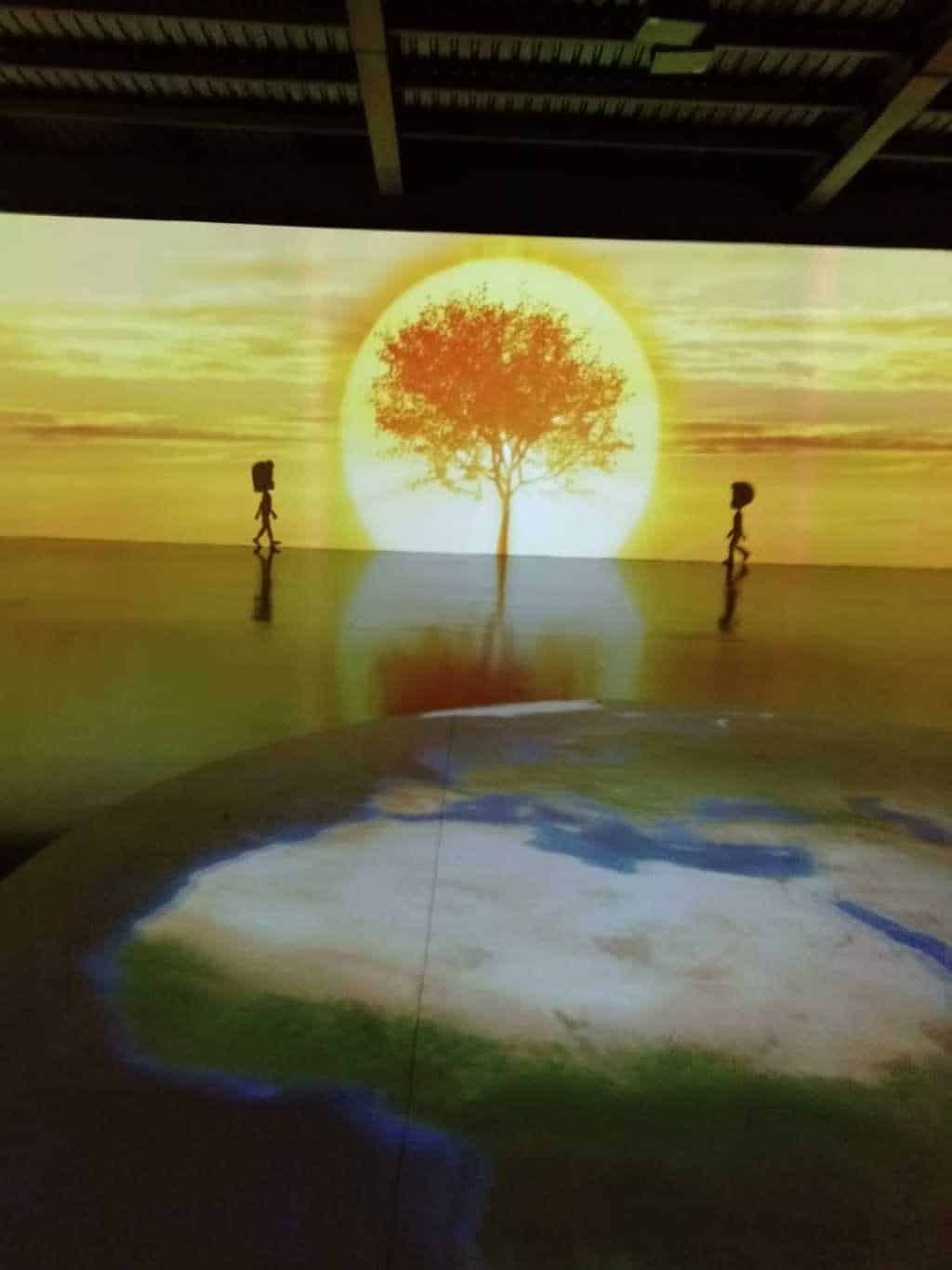 Yolculuğumuzu bitirmeden önce 10 dakikalık kısa bir video daha izliyoruz, bulunduğumuz odanın dört bir köşedinde duvar boyutlarında ekranlar bulunuyor, videoda konuşan ise yerküre yani dünyamız. Dünyamızın ağzından tavsiyeler dinliyoruz..