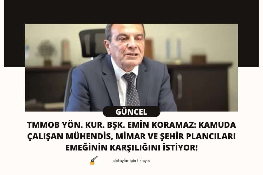 TMMOB Yönetim Kurulu Başkanı Emin KORAMAZ, kamuda çalışan mühendis, mimar ve şehir plancılarının diğer meslek sınıflarıyla aralarındaki eşitsizlik ve farklılıkların giderilmesi amacıyla mühendis, mimar ve şehir plancılarının çalışma hayatı ve emeklilik dönemini kapsayan haklarında iyileştirme yapılması gerektiğini dile getirdi.
