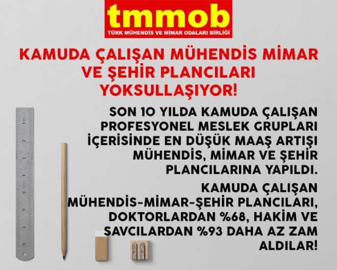 TMMOB 45. Olağan Genel Kurulu’nda alınan kararlar uyarınca kamuda çalışan mühendis, mimar ve şehir plancılarının ücretlerinin ve özlük haklarının iyileştirilmesi için TMMOB tarafından kampanya başlatıldı.