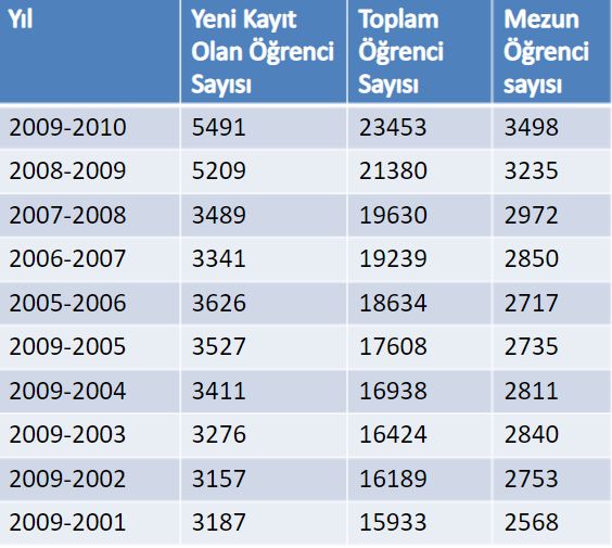 Lisans Düzeyindeki İnşaat Mühendisliği Öğrenci Sayısının Yıllara Göre Değişimi