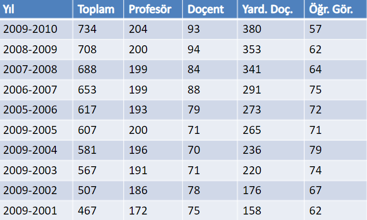 Lisans Eğitimi Veren İnşaat Mühendisliği Bölümünde Görevli Öğretim Elemanları Sayıları ve Yıllara Göre Değişimi
