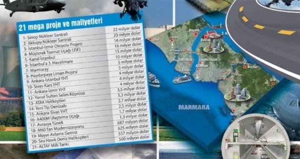İşte Türkiye’nin, 130 ülkenin milli gelirinini geride bırakan 21 mega projesi ve maliyetleri: