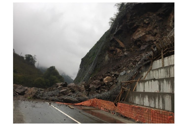 Trabzon’un Dernekpazarı ilçesinde dün gece saatlerinden itibaren etkisini gösteren şiddetli yağış heyelana neden oldu. Çaykara ilçesindeki dünyaca ünlü turizm merkezi Uzungöl’e ulaşımın sağlandığı karayolu yamaçtan kopan toprak ve kayalarla kapandı. D-915 yolunun Holo Boğazı mevkiinde gerçekleşen heyelanda ölen ya da yaralanan olmadı. Karayolları ekipleri tarafından heyelanlı yolda çalışmalar sürürken, ulaşım yapımı devam eden tünelden kontrollü olarak sağlanıyor.