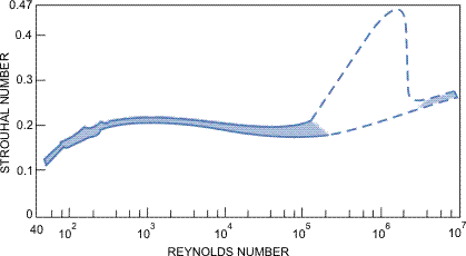 Strouhal sayısı, Reynolds sayısının bir fonksiyonudur.