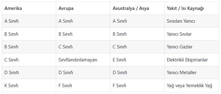 Yangın Sınıfları