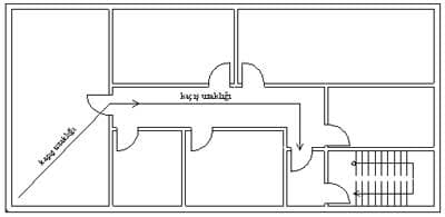 Kaçış Uzaklığı: Kat içinde herhangi bir noktada bulunan bir kullanıcının kendisine en yakın bir kat çıkışına kadar almak zorunda olduğu yolun gerçek uzunluğudur.