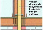 Yangın Duvarı: İki bina arasında veya aynı bina içinde farklı yangın yüküne sahip hacimlerin birbirinden ayrılması gereken durumlarda, yangının ilerlemesini ve yayılmasını tanımlanan süre için durduran düşey elemandır.