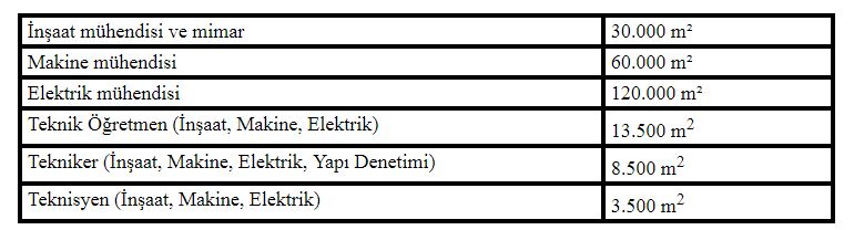 | Tekniker (İnşaat, Makine, Elektrik, Yapı Denetimi) | 8.500 m2 |