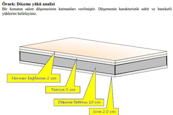 •Döşeme ağırlığı ( döşeme betonu+tesviye betonu+kaplama+sıva).